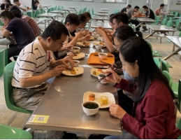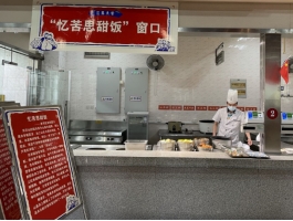 党员师生通过展板详细了解了“红军饭”的背景故事。本次四食堂“忆苦思甜饭”所用食材均尽最大可能贴近红军长征时的食物,大家一起打饭品尝,一起重温长征那段红色记忆,一同分享党史学习中的感悟,激发起学党史、感党恩的热情。