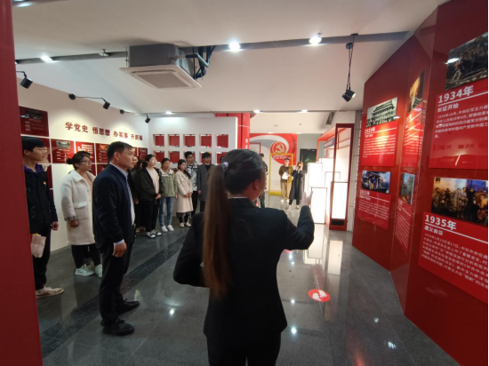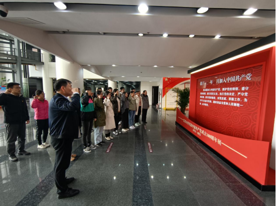 在讲解员带领下,大家依次参观学习了“新时代中国共产党的历史使命”“党史大事记”“江苏大学历史变迁”“党史同心圆”“我们的成就”“习近平总书记金句”等板块内容。参观活动现场,在院党委书记潘金彪带领下,全体党员重温了入党誓词。