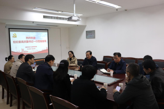 11月19日上午,校党委常委、纪委书记高庆国,校纪委副书记夏民,校纪委委员、监督检查处处长徐惠红一行到百家乐预测软件 调研指导工作。院党委书记潘金彪,副院长孙宏祥,党委副书记、副院长顾瑜婷,学院办公室全体老师,物理系和物理实验中心教师代表参加调研。
