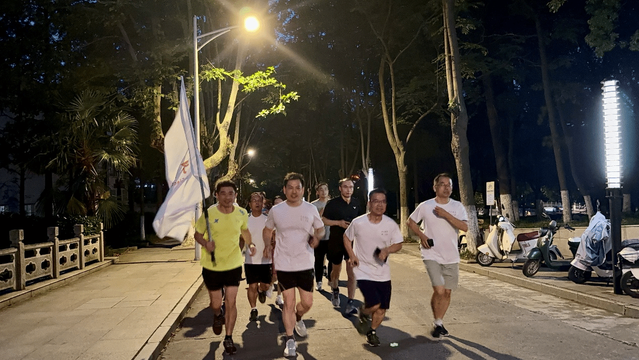 为热烈庆祝中国共产党成立104周年,弘扬伟大建党精神,展现新时代青年昂扬奋进的精神风貌,百家乐预测软件 联合泓江书院于7月1日晚举办“青春向党·步履不停”七一献礼主题夜跑活动。院党委书记潘金彪、院长陈元平、副院长徐晶、工会主席殷红飞、院关工委委员陶根宁、王纪俊等20余名教师和20余名本科生、研究生以奔跑的姿态,在夜色中点燃爱党爱国热情,汇聚砥砺奋进的青春力量。