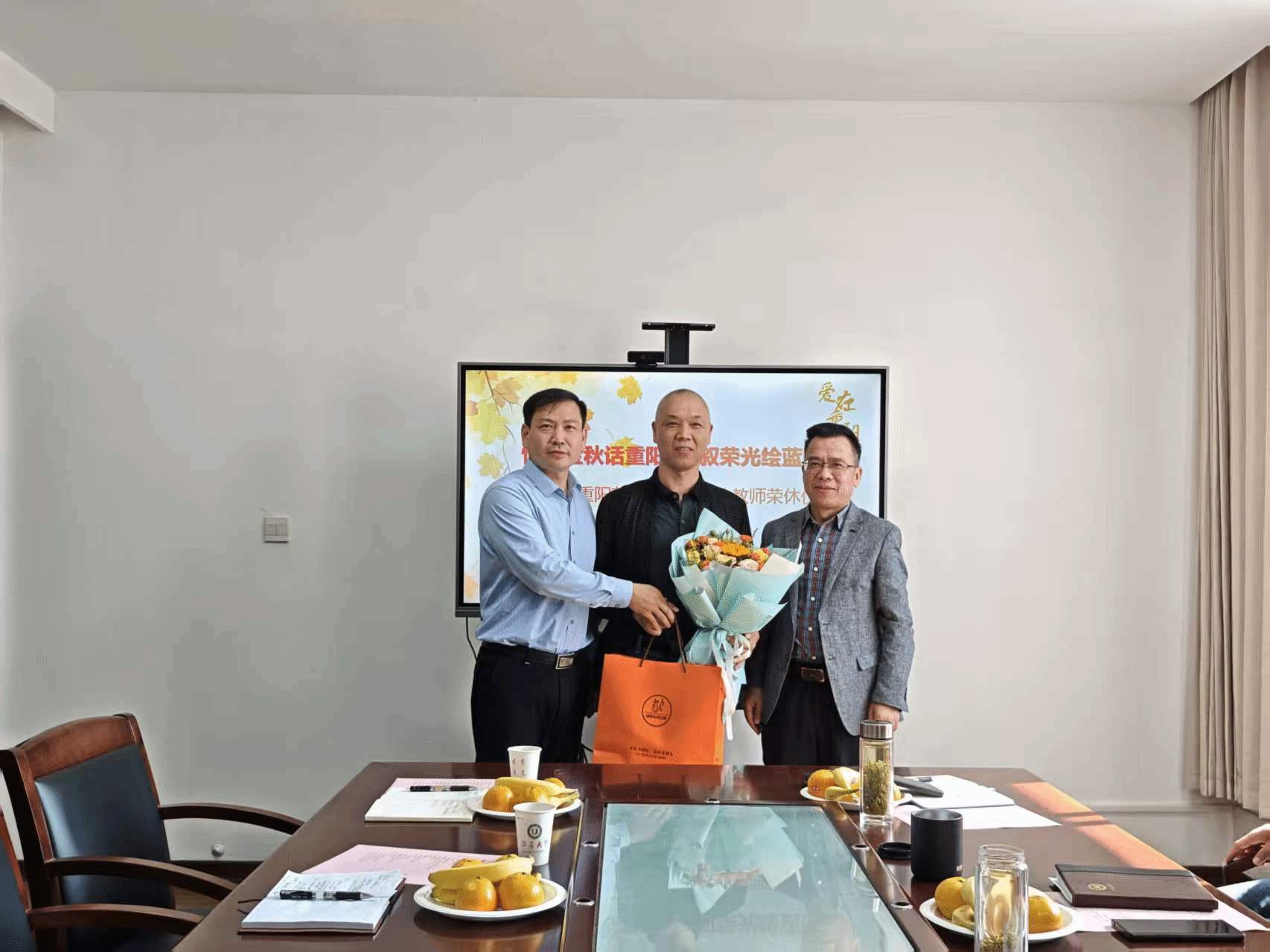 10月29日,百家乐预测软件 在主楼239会议室举办了主题为“情暖金秋话重阳,共叙荣光绘蓝图”的重阳节座谈会暨退休教师荣休仪式。3位退休教师代表应邀参加座谈。院党委书记潘金彪,院长陈元平,副院长孙宏祥,党委副书记、副院长顾瑜婷,副院长徐晶出席会议,同时参加座谈的还有分工会主席、关工委老教师代表、教工党支部书记及院办教师。会议由潘金彪主持。
