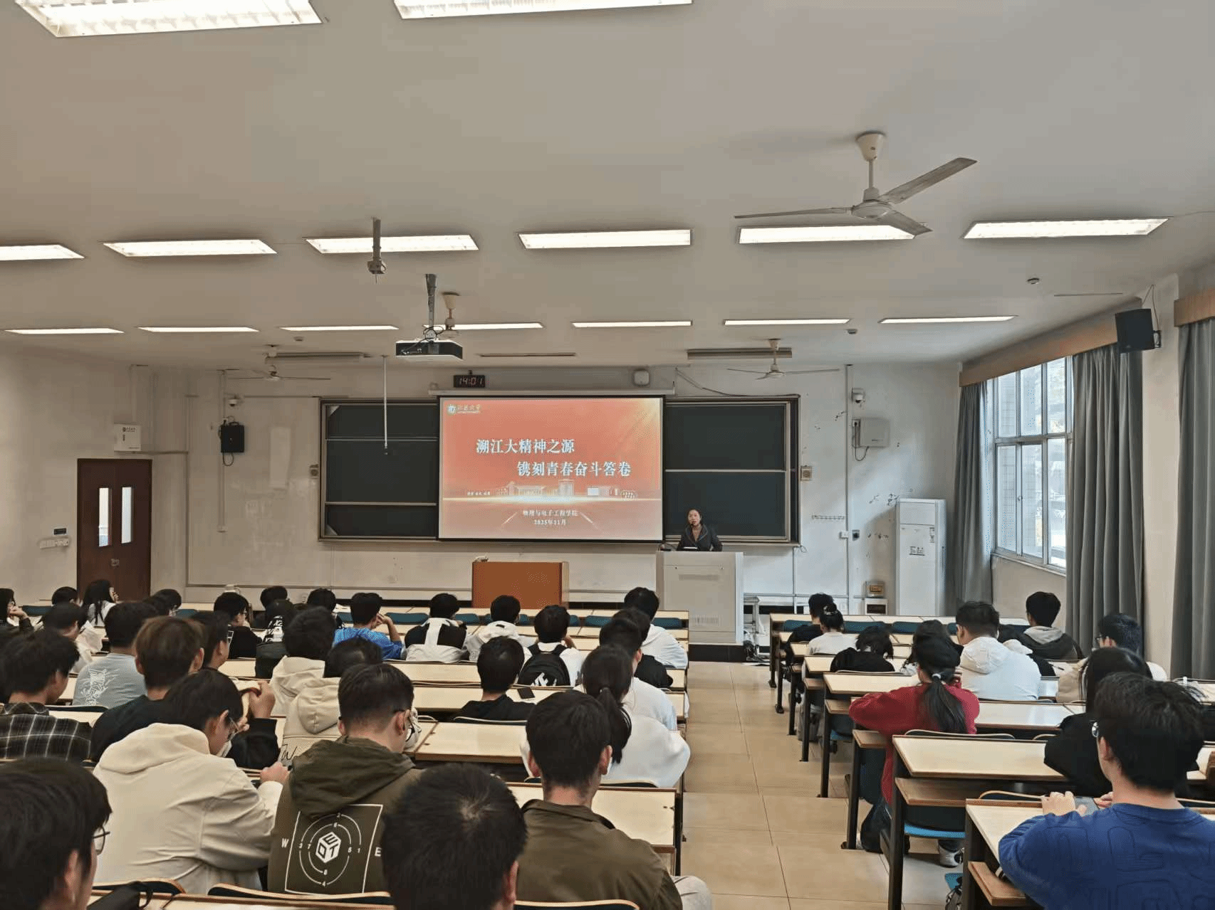 汤静霞以“追溯江大校史,厚植信仰根基”开篇,向同学们生动地梳理了学校深厚的办学历史和文化积淀,深情回顾了江苏大学在长期办学历程中形成的独特精神传统。汤静霞通过讲述学校发展过程中的重大事件、前辈先贤的感人事迹以及一代代江大人砥砺奋进的生动故事,深刻阐释了江大精神“自强厚德,实干求真”的丰富内涵与时代价值。她勉励同学们,要主动探寻学校精神文化的源头活水,从中汲取成长的力量,将个人奋斗融入学校发展和国家建设的宏伟蓝图。