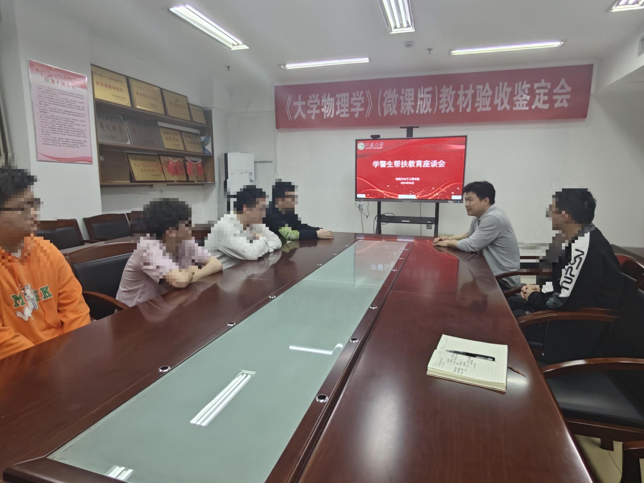 5月13日,物电学院在物理楼301会议室召开学业警告学生帮扶教育座谈会。物理系主任尚学府老师,辅导员杨伟伟,受学业警告学生参加此次座谈会。