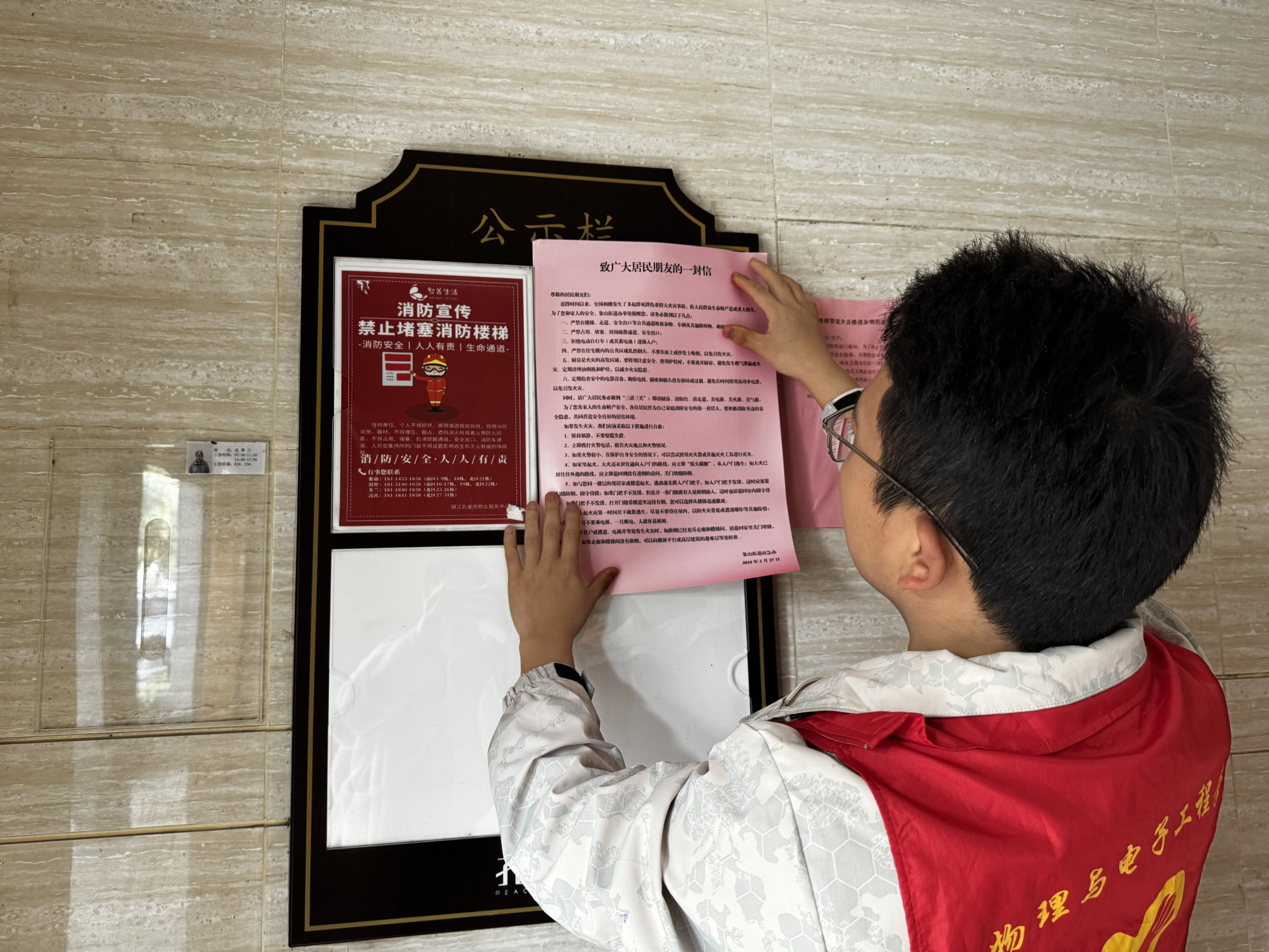 消防安全隐患排查中,消防员重点检查了居民楼道是否有杂物、消火器材是否过期、消防门是否常闭等普遍存在的消防隐患点等。江苏大学百家乐预测软件 团委组织青年志愿者们走进社区,落实“敲门行动”,发放消防安全知识宣传页,开展“三清三关”入户宣传,引导住户主动清理公共区域摆放的私人用品、清空楼道及天井杂物,规整电动车停放,为社区群众营造安全的居住环境,提高居民消防安全意识,以实际行动践行新时代雷锋精神。