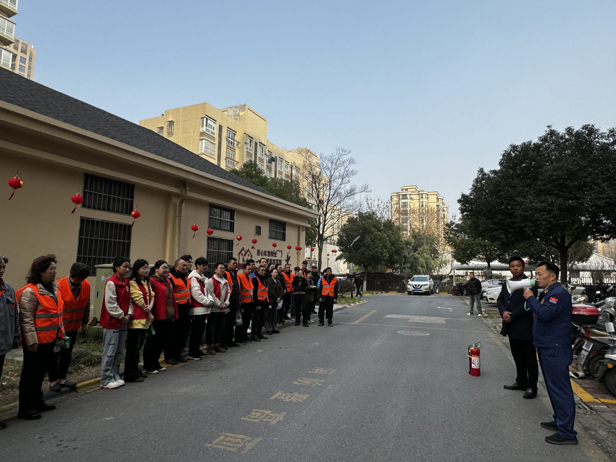 在现场消防员和志愿者的指导下,40余名社区居民用湿毛巾捂住口鼻,弯腰沿着指定路线进行逃生演练,志愿者在楼道转弯处进行引导和疏散,全体人员快速、有序撤离到了室外开阔地带。消防实践操作环节,现场群众踊跃参加,严格按照灭火器使用操作步骤,“提、拔、握、压”一气呵成,“火情”迅速被扑灭。通过消防逃生应急演练活动,切实提高了居民群众对消防安全的认识,增强了大家自救互救的能力。
