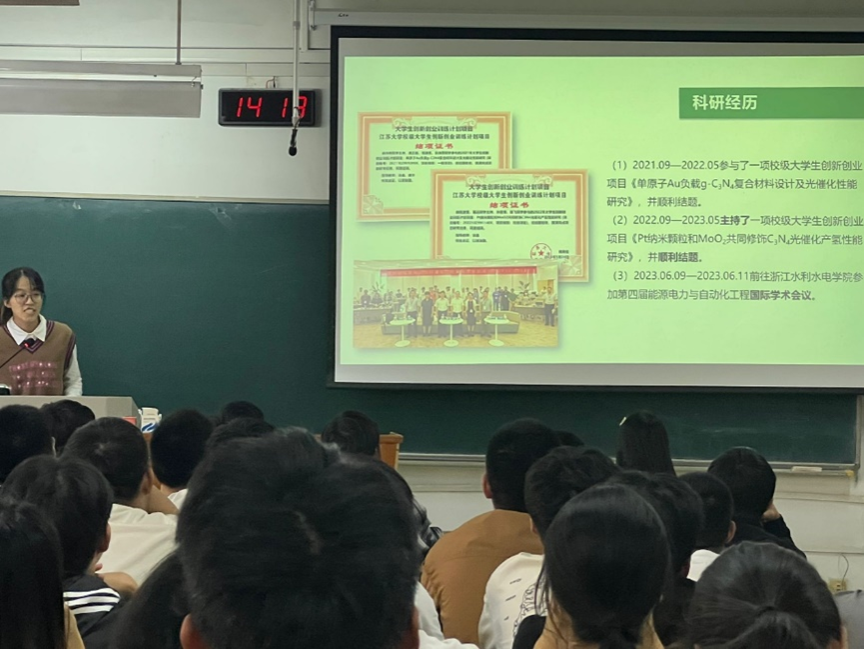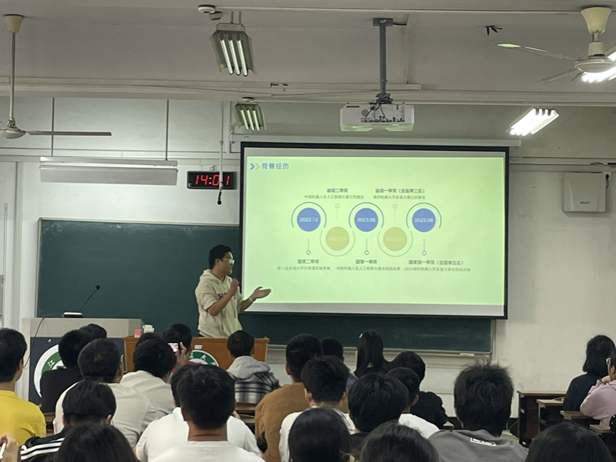 分享会上,王伟同学围绕自己的竞赛时间线安排、竞赛团队角色担当、竞赛过程与技能准备等内容展开经验分享,重点介绍了参加大学生物理实验竞赛、中国机器人及人工智能比赛和RAICOM比赛的经历与成果,向在场同学普及了学科竞赛相关知识。程逸雯同学从竞赛经历、科研经历和保研心得三个主要方面进行分享,向同学们传授了了解和准备比赛的方法和做好科研相关实验的技巧。周俊磊同学结合自己的科研经历讲解了在不同科研阶段的心理调适方法,并鼓励同学们努力参与到科学研究中,深度发掘科研魅力。