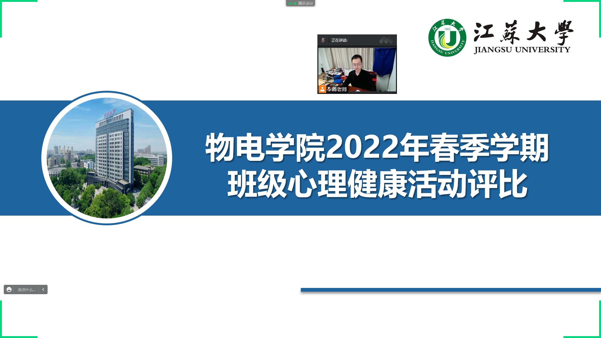 610日下午,百家乐预测软件 通过腾讯会议app在线上举办了2022上半年班级心理健康教育评比活动,百家乐预测软件 心理辅导员蒋春翔、心理协会全体成员,各班心理委员参加评比活动。活动由蒋春翔主持。
