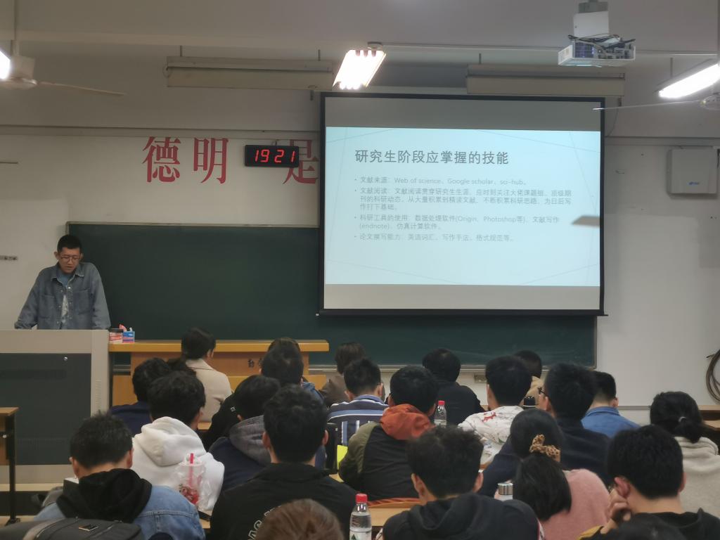 首先,蒋老师简要介绍了李铭和杨帅珩同学的科研经历和获奖情况。而后,李铭同学向大家分享道,研究生需要常与导师沟通并明确自己的研究方向,多读高质量文献。她着重强调文献选择、文献整理、以及申报课题方面的技巧;最后她表示科研是需要全身心投入,不能消极懈怠。接着,杨帅珩同学分享了他的科研经历,他表示在探索科研道路上,会遇到很多艰难险阻,但是我们应该砥砺前行。研究生需要的是坚守和创新,只要在自己的领域坚持不放弃,就会有灵感迸发。要坚守,才会有创新的机会;有了创新成果的鼓舞,才会有坚守的信心。最后,他表示科研也要注意劳逸结合,保证身心健康,才会有更多硕果。