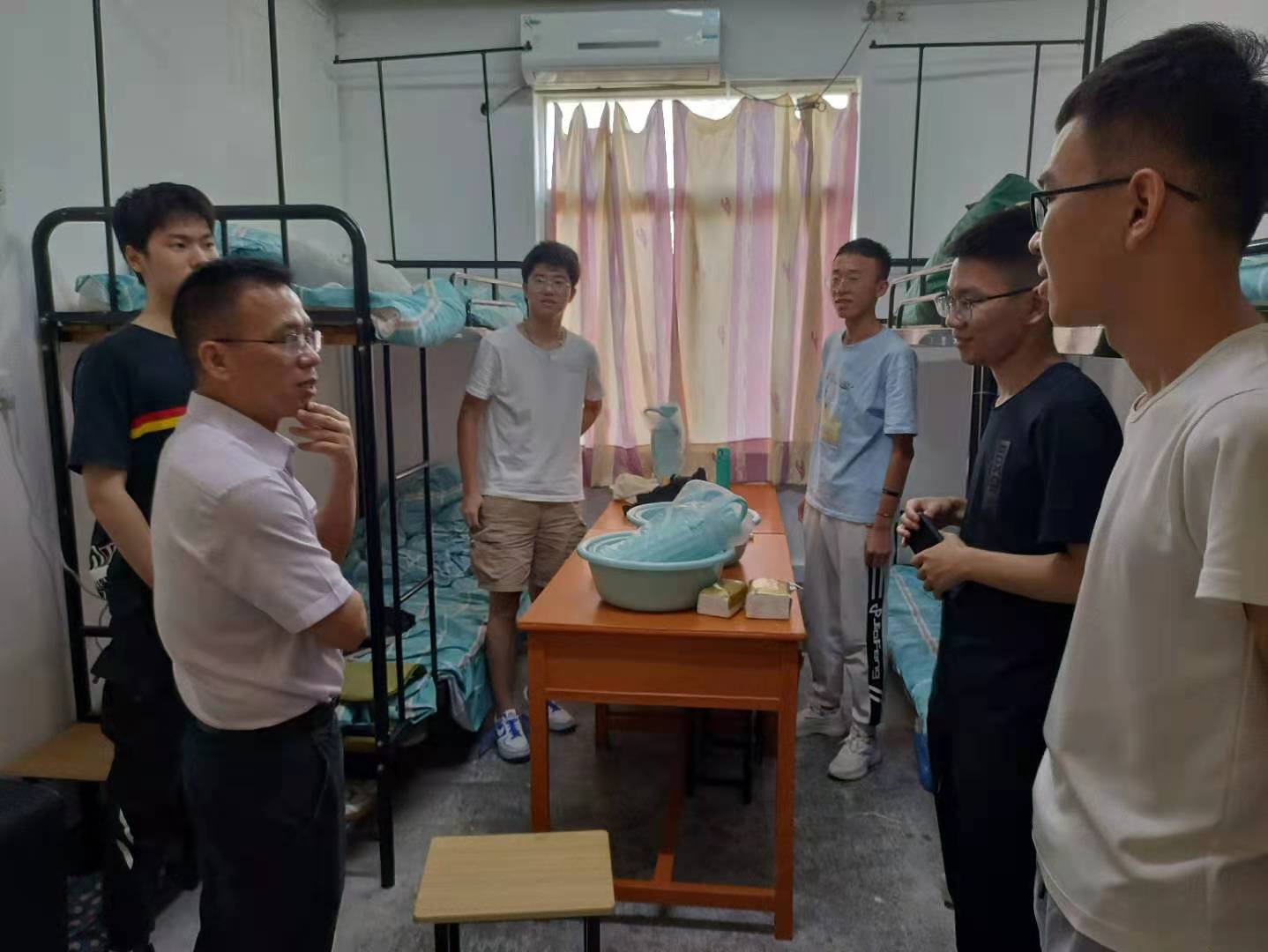 在新生宿舍,领导们与同学们亲切交谈,询问大家对于江苏大学的第一印象以及对未来大学生活的规划,同学们纷纷表达了对于未来在江大学习生活的美好憧憬。领导们鼓励大家,要尽快适应大学的学习节奏和生活方式,要树立远大理想,合理进行学业规划,尽快确立目标及方向,多跟优秀的高年级同学交流,努力奋斗,不负韶华。