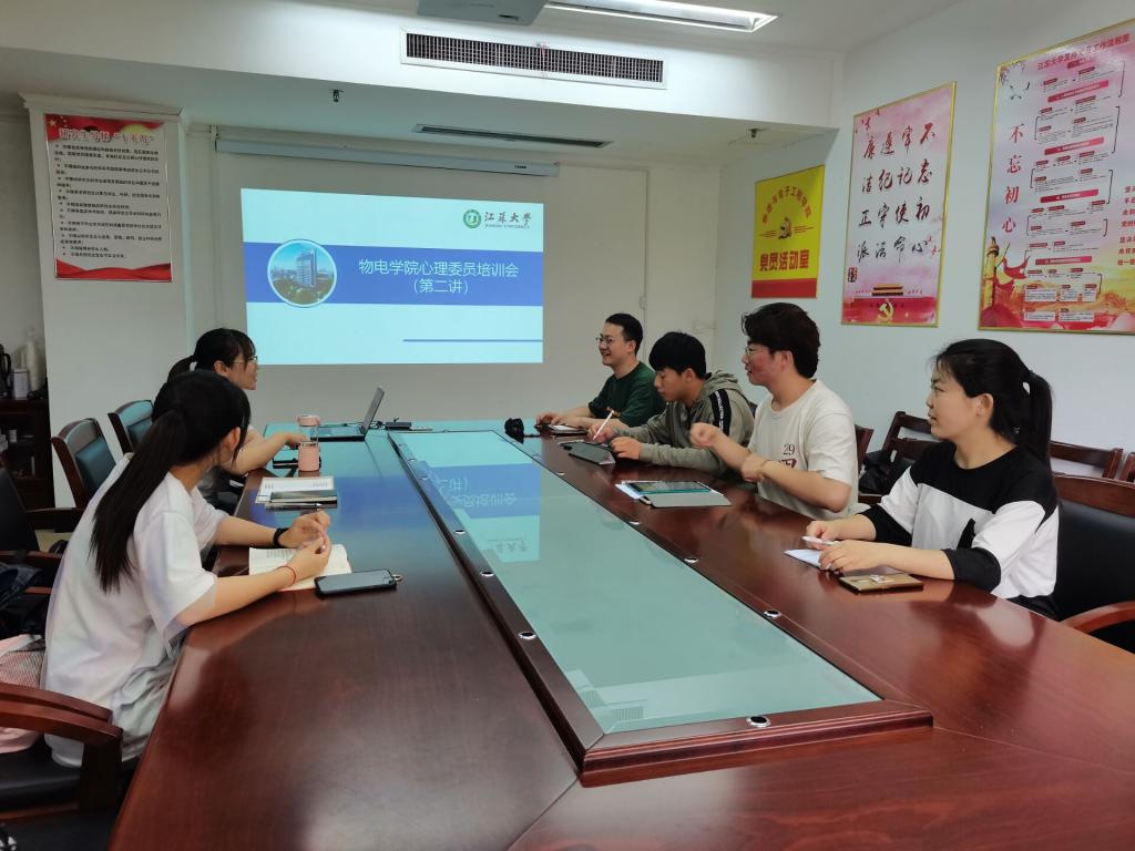蒋老师通过PPT对心理委的工作内容进行了阐述针对大学生心理健康问题,分别从心理问题等级划分、大学生心理健康标准、大学生常见心理问题及原因分析等方面入手,为心理委们介绍了大学生心理健康教育工作的重点方法。而后,老师重申了心理委员的职责