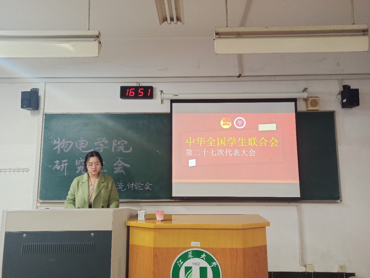 青春,是用激情点燃的希望,是用才情散发的底蕴,是用创新奉献祖国的活力。通过学习中华全国学生联合会第二十七次代表大会的重要精神,物电研会的同学们有更加坚定的信念、更加明确的方向去实现自己的人生理想和人生目标,为党和国家奉献青春与力量,努力投身更美好的国家的建设中去。