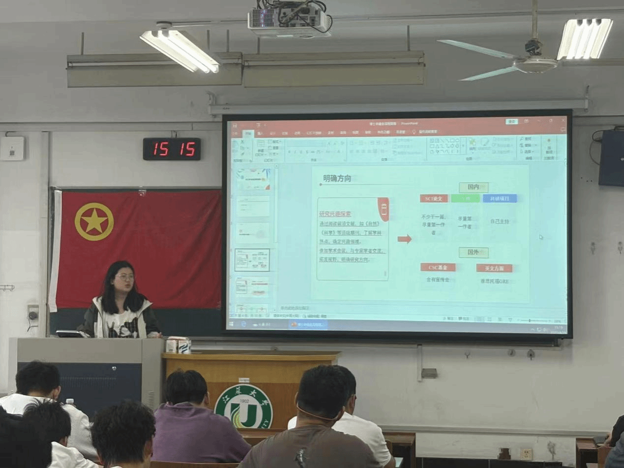 随后,2025级博士新生代表程文瑶、张雪琪同学依次分享了自己的申博历程。们从科研准备、院校选择、导师联系、材料撰写、面试技巧等关键环节展开详细介绍,并结合自身经历,强调了学术诚信、创新思维和持之以恒的重要性。在互动环节,与会同学踊跃提问,就研究方向匹配、时间管理、心理调适等问题展开深入交流,现场气氛热烈。
