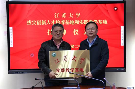 李新朝代表江苏大学和江苏省姜堰第二中学校长邱晓昇签署“江苏大学教育实习基地”协议书,并为“江苏大学教育实习基地”铜牌揭牌。