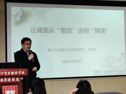 刘宜伟老师以“让课堂从粗放走向精准”为题,介绍了中学物理教师所需的“三个精准”,并重点讲解了“智慧教育”。同时以西津渡校区为例,详细展示了智慧教育与传统教学方法在中学课堂教学中的不同。