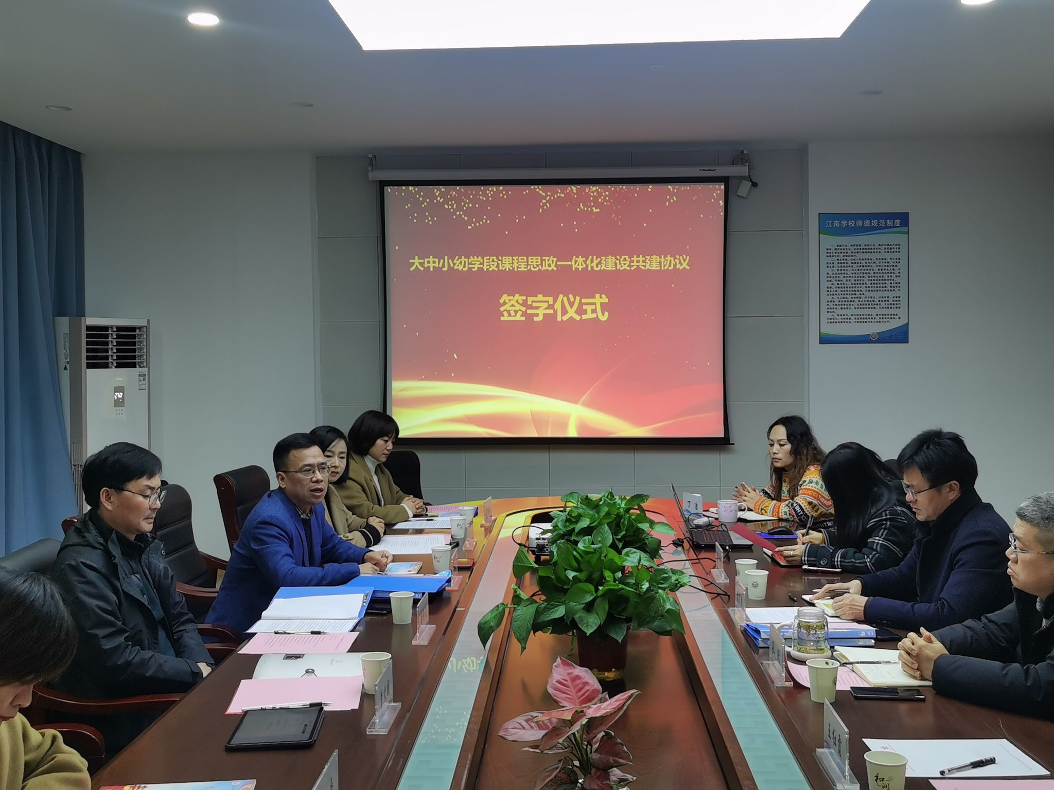在针对学生培养、教学研究、教研项目申报和科技创新活动等方面的合作进行了广泛交流并达成共识后,各共建单位负责人签订了共建协议,讨论了在镇江市教育局的引领下形成共建专题教研室的机制和步骤。此次课程思政一体化共建协议的签订,不仅有助于拓展百家乐预测软件下载 师范生教学实践基地的广度和深度,更是挖掘并彰显课程的育人价值,推动“课程思政”落地征程中迈出的开创性一步。