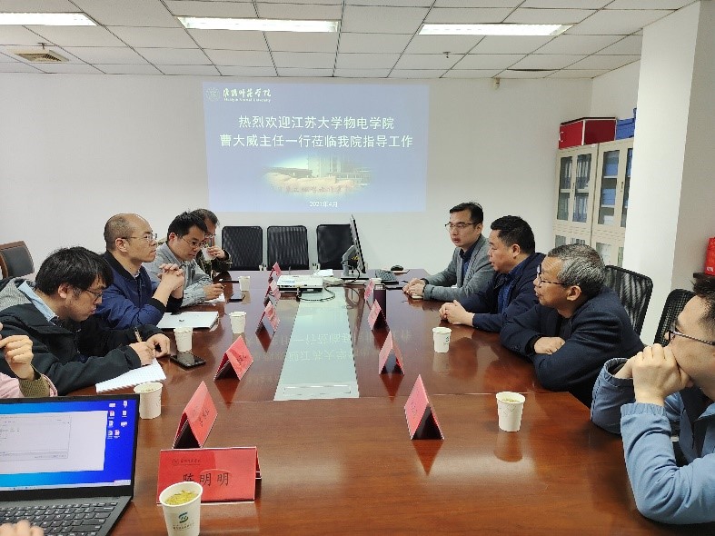 为高质量推进物理学(师范)专业认证工作,4月30日,物理系主任曹大威率队赴淮阴师范学院调研师范专业认证工作。淮阴师范学院物理与电子电气工程学院院长陈贵宾、副院长李清波、副院长孙红兵等人接待调研组一行。