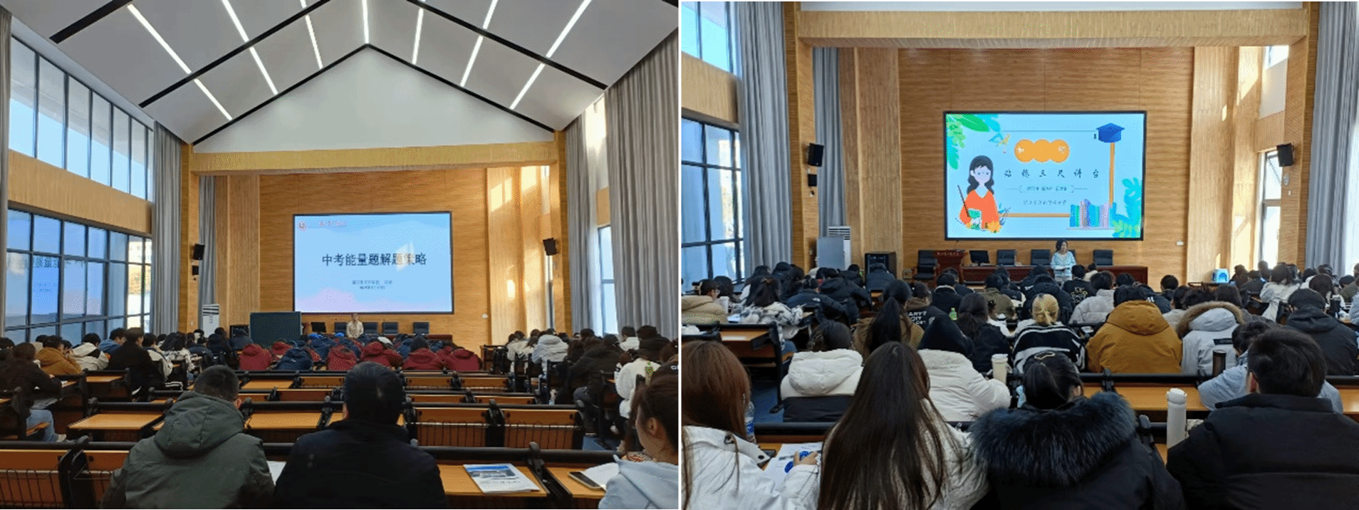本次见习分为两个环节。首先,江南学校政教处副主任刘颖老师分享题为《中考能量题解题策略》的现场公开课。刘颖老师从中考物理真题出发,通过题干分析、讲解解题思路、构思思维导图和流程图的形式为大家分享了解题方法,这种图文并茂的方式使同学们耳目一新,深受同学们的欢迎。
