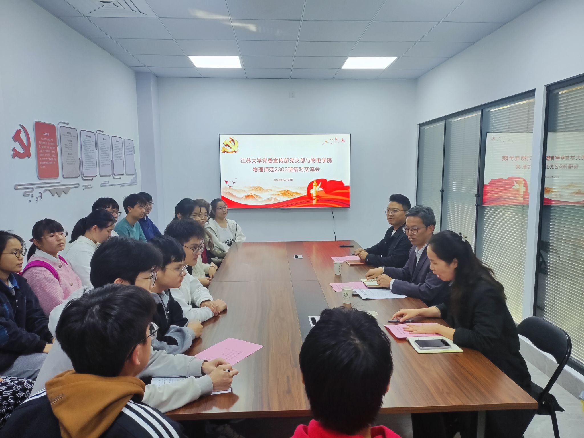 On October 23rd, the Party Committee Publicity Department Branch and the Physics (Teacher Education) Class 2303 of the College of Physics and Electrical Engineering conducted a paired exchange activity at Jinghu Academy. The event was attended by Wang Yuzhong, Secretary of the Party Committee Publicity Department Branch and Deputy Director of the Party Committee Publicity Department, Gu Yuting, Deputy Party Secretary and Vice Dean of the College of Physics and Electrical Engineering, counselor Yang Weiwei, and the students of Physics (Teacher Education) Class 2303. The event was hosted by Gu Yuting.